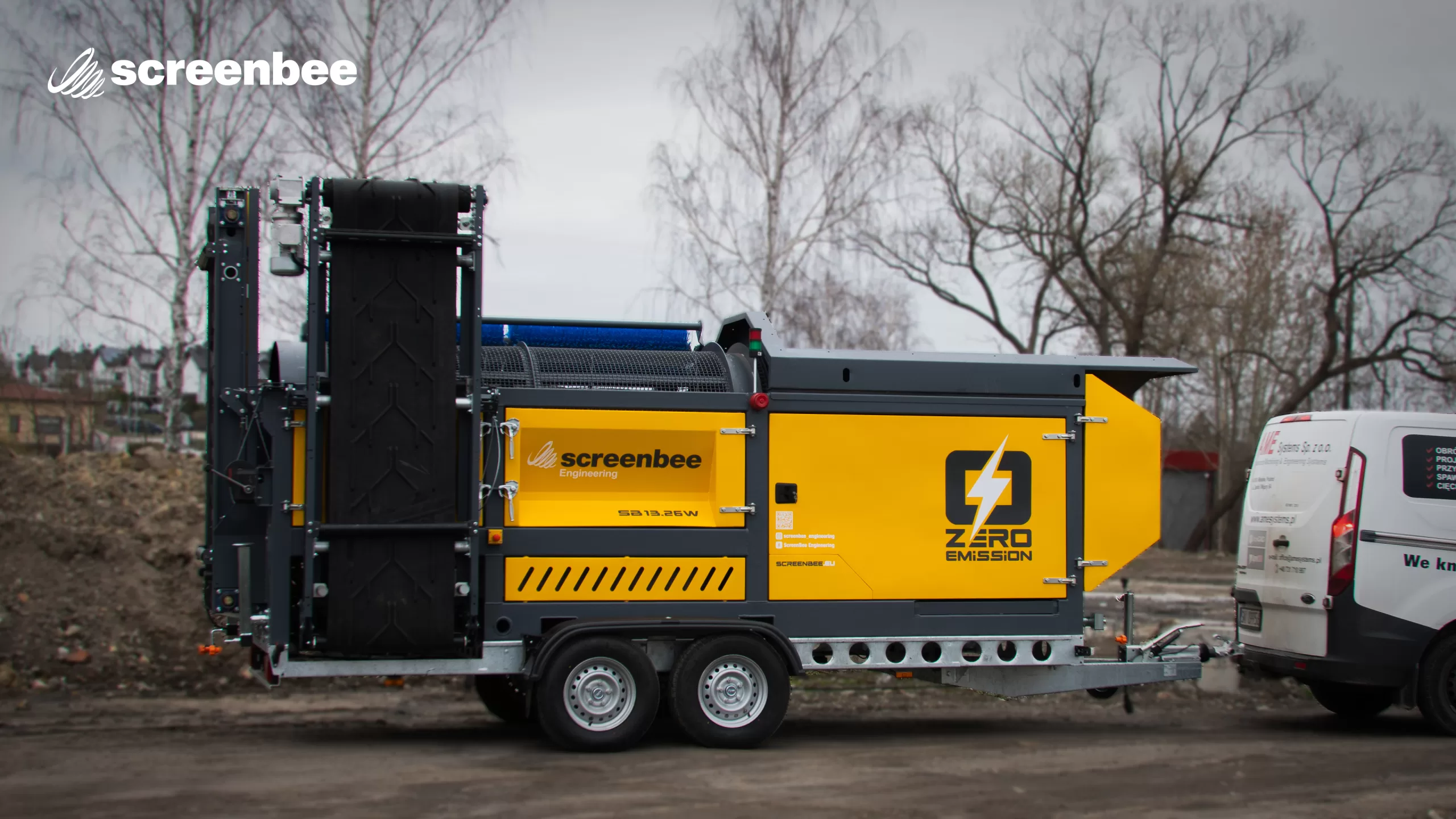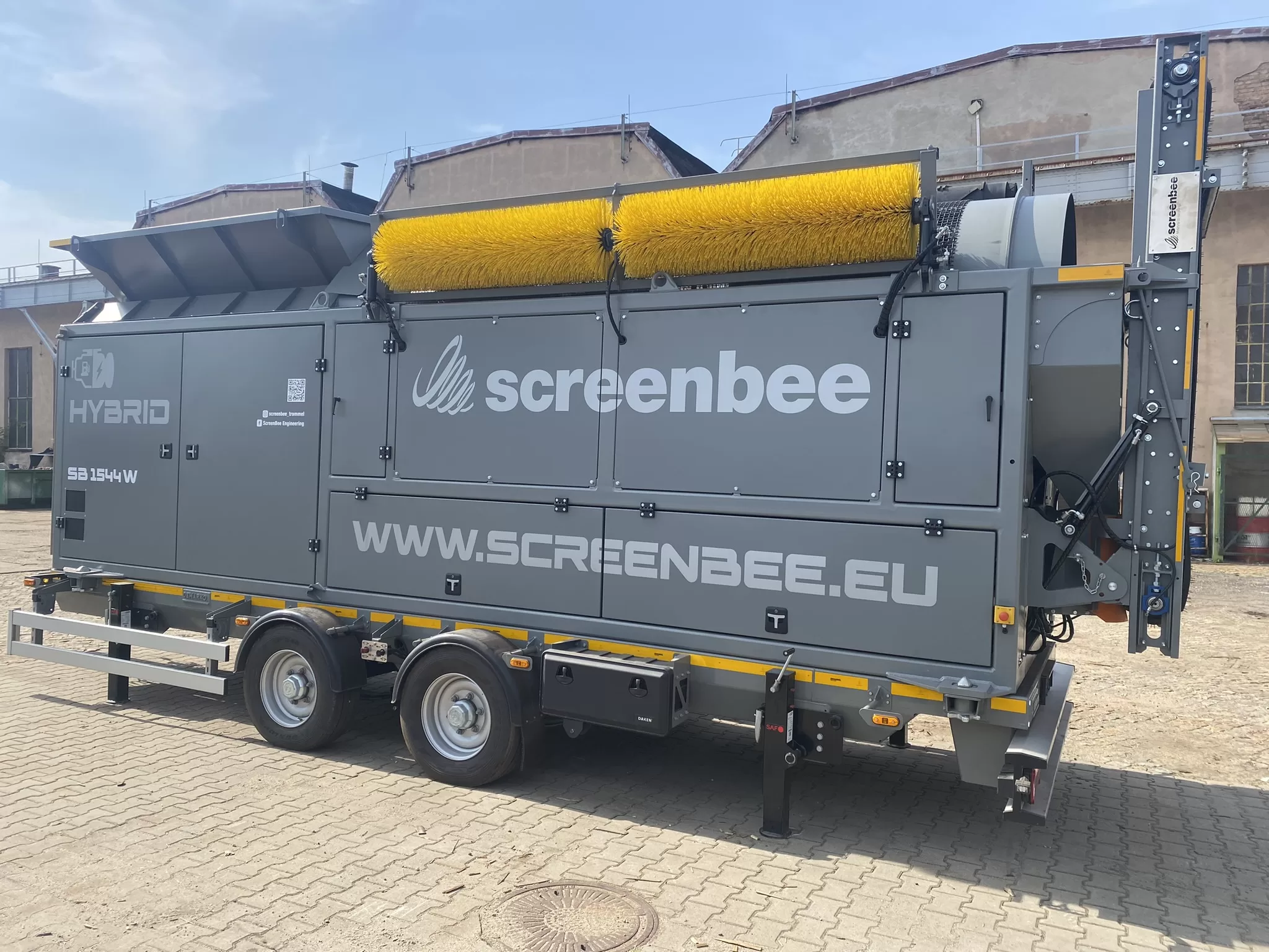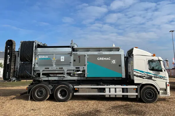 Didžiausias mobilus GREMAC sijotuvas su užtraukimo kabliu (hook-lift) sistema