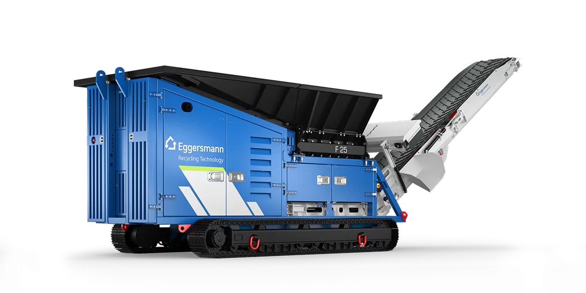 Dviejų velenų lėtaeigis smulkintuvas FORUS F 25, skirtas pirminiam įvairiausių medžiagų ir atliekų susmulkinimui.