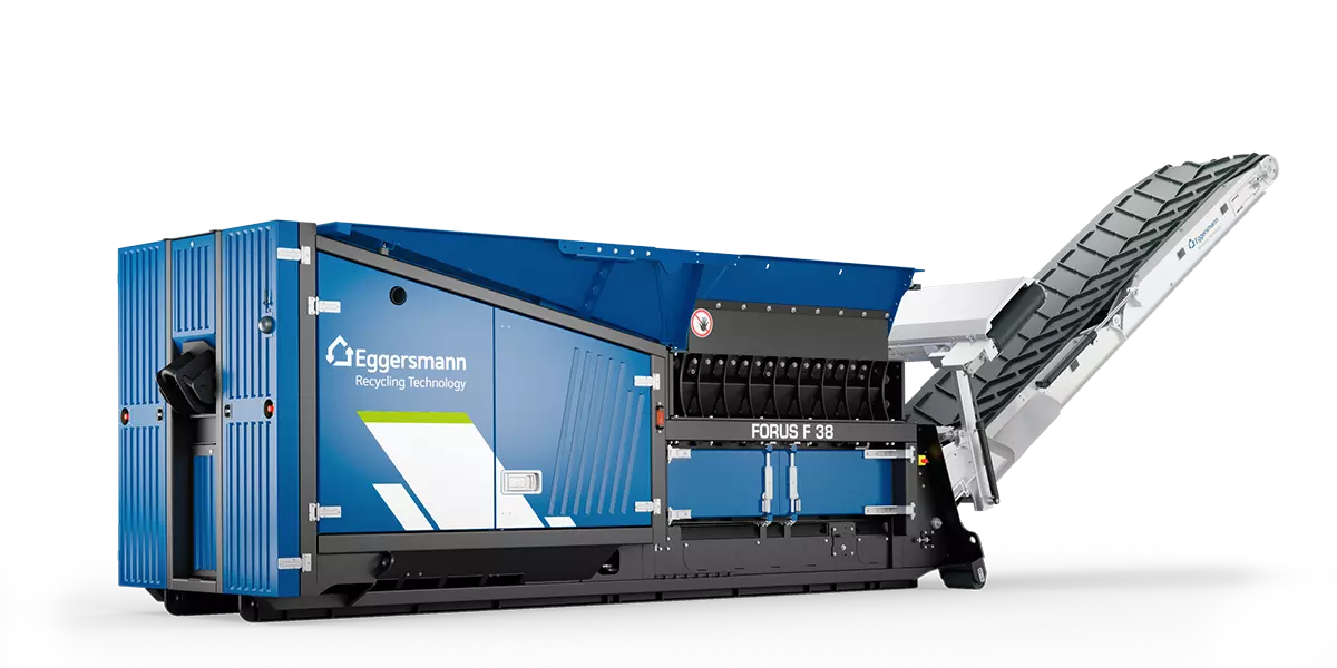 Dviejų velenų lėtaeigis smulkintuvas FORUS F 38, skirtas pirminiam įvairiausių medžiagų ir atliekų susmulkinimui