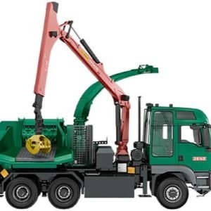 Profesionali medienos kapoklė ant sunkvežimio važiuoklės, varoma sunkvežimio varikliu.