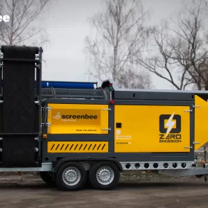 Mobilus kompaktiškas būgninis sijotuvas su elektros generatoriaus pavara.